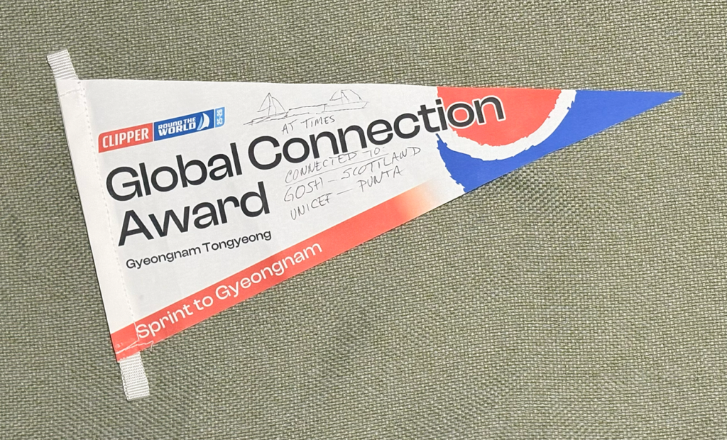 Our “Global Connection Award” was to celebrate the Tongyeong to Seattle connection the race created. I found the irony in that through this race were connected by tow line to the boats branded GOSH, Scotland, UNICEF, and Punta. So I guess, in a way, it’s the perfect award to close out the disappointing but memorable race.