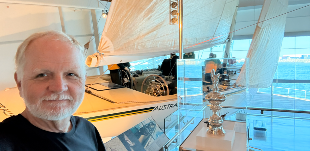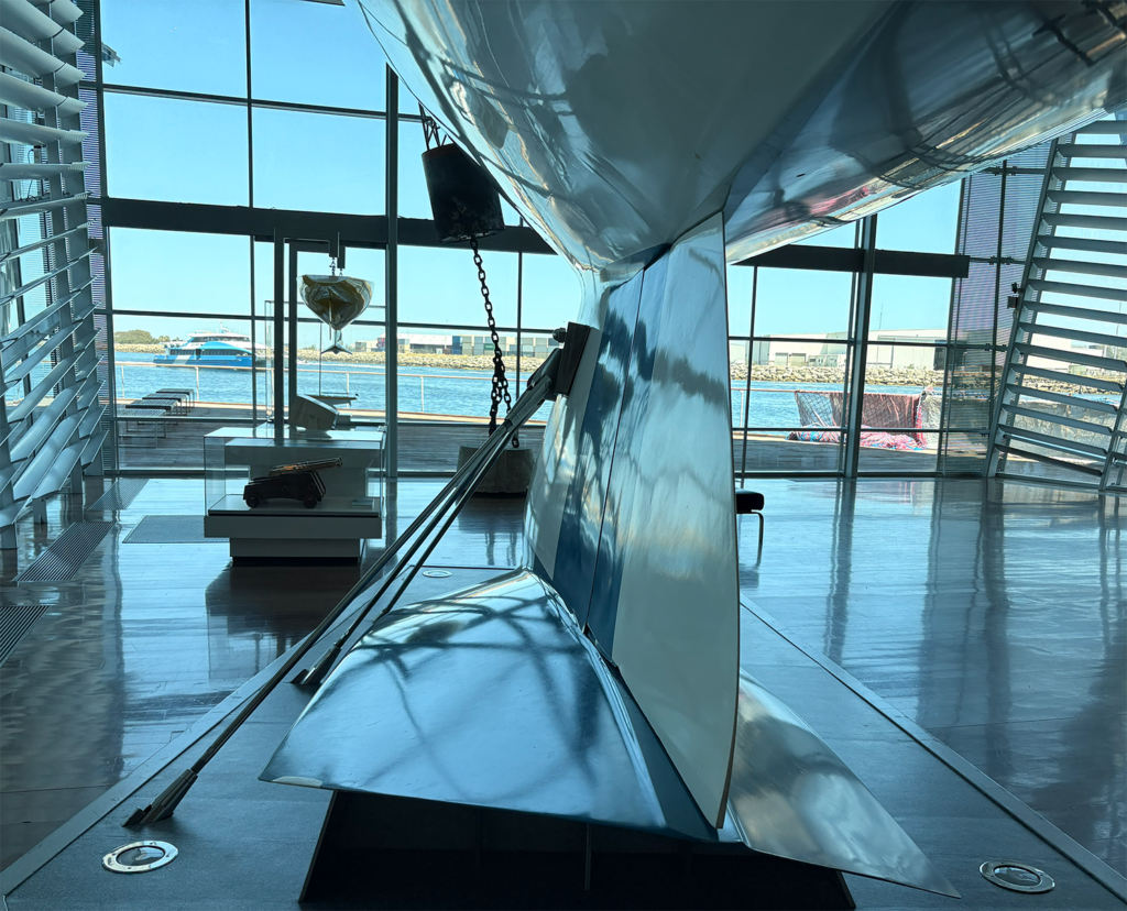 Today, I’m sitting in the Western Australian Maritime Museum, right next to Australia II and her winged keel.