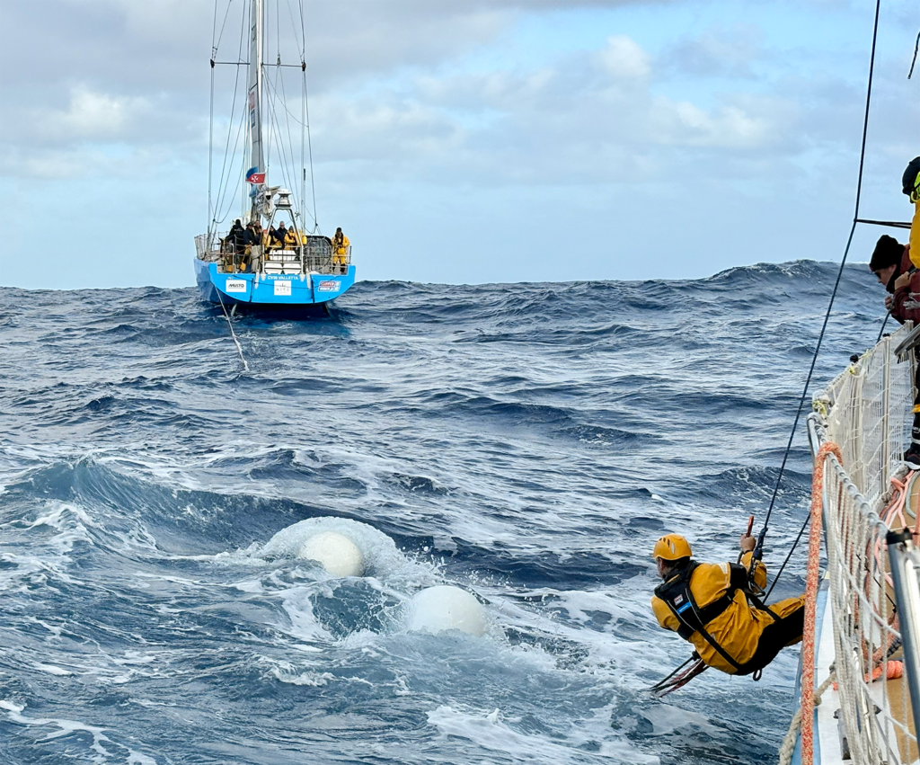 Then came another test — our water maker failed. Suddenly, we were on water rations for nearly a week. Clipper’s shared-fleet spares system proved its value when the UNICEF boat came to our rescue with a portable water maker. We executed a boat-to-boat transfer as we had trained for, mostly calm and deliberate despite the conditions.